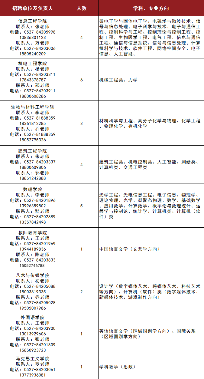 联系人:吴老师、赵老师或与人才需求信息表中相关学院工作人员联系。