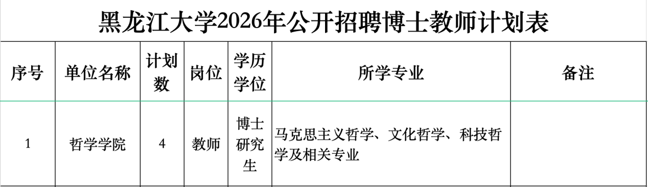 黑龙江大学哲学学院2026年公开招聘博士教师公告