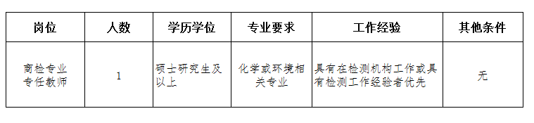 因工作需要,学院现面向社会招聘环境监测系教师1名。