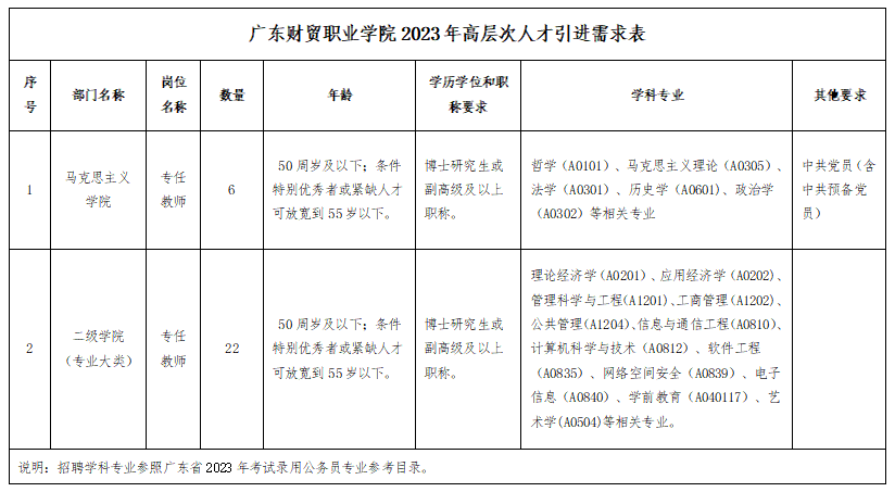 广东财贸职业学院2023年招聘28名高层次人才公告